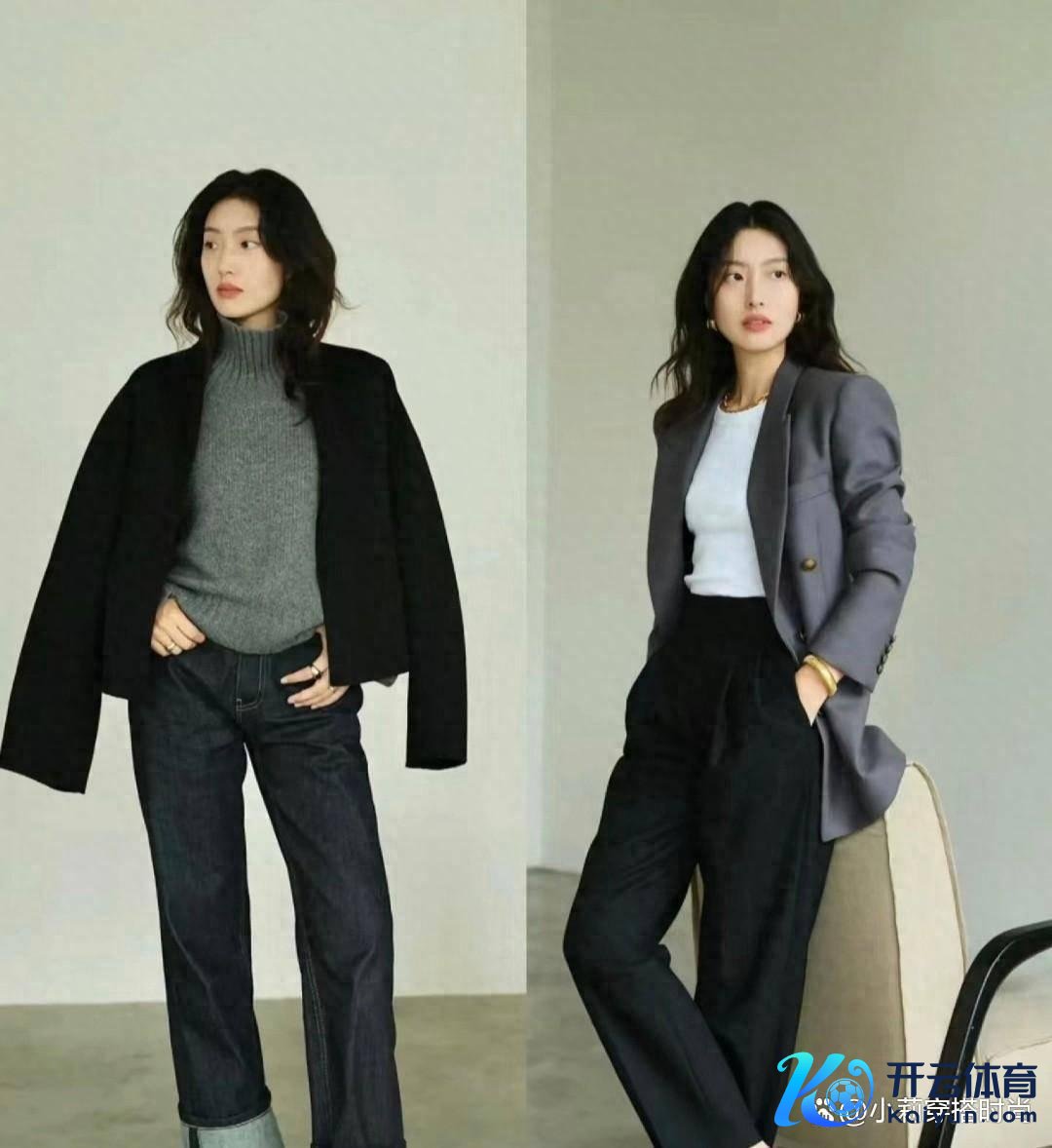 这两套衣服所用的基同意思其实是同样的,仅仅内衣的遴荐上有一些分辩。不外两东谈主齐用灰色外衣和深色裤子来搭配女性身段,尤其是小短腿。守秘力相称强,同期也能匡助众人得到热心又前锋的体验。这才是秋冬正确的穿衣表情。秋天不穿花,冬天不露腿开云体育,绚丽又多礼。