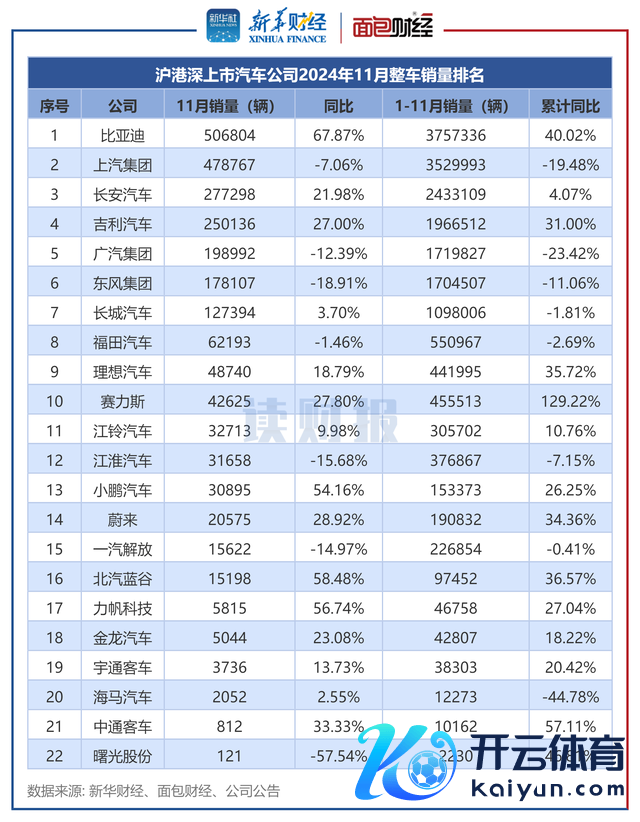 近期,汽车制造厂商连续暴露11月销售数据。新华财经和面包财经筹议员以A、H股上市的主要汽车厂商暴露的月度销售数据公告,差异统计其整车、新动力汽车的销量。